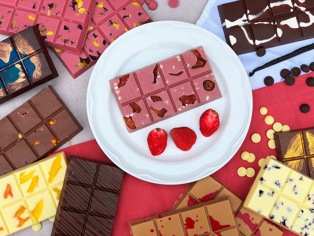 As barras maciças serão nos sabores: Ruby, pistache e Cramberry; Ruby, morango e açúcar perolado; Branco e damasco; Branco e Cramberry; Branco com paillete feuilletine (massa folhada caramelizada); Negresco; Gold e Nozes; Ao leite e amêndoas; e Intenso 70% cacau.