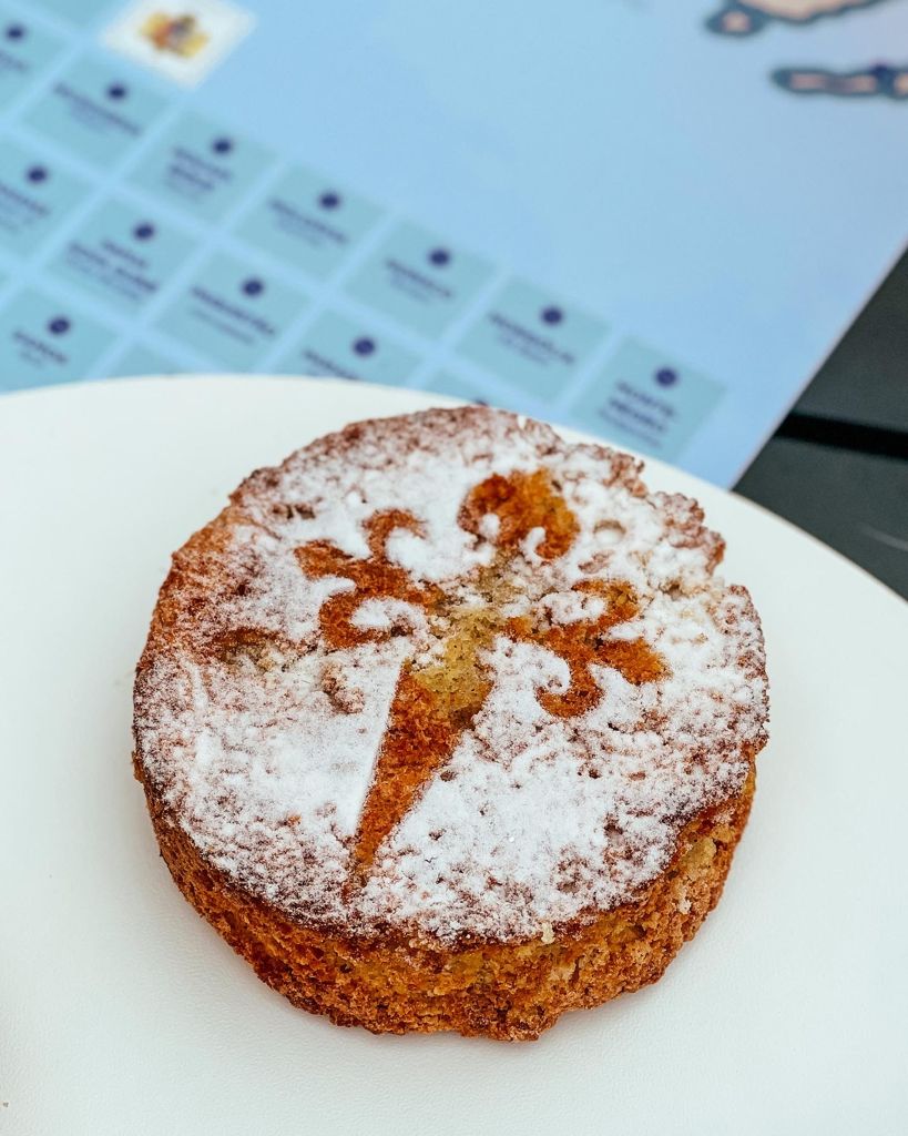 Torta Santiago – é o doce da minha amada Espanha. Feita com farinha de amêndoas, raspas de limão, canela… hummmm! Quem prova se apaixona. E se não se apaixona é porque não provou uma bem feita. 😆
