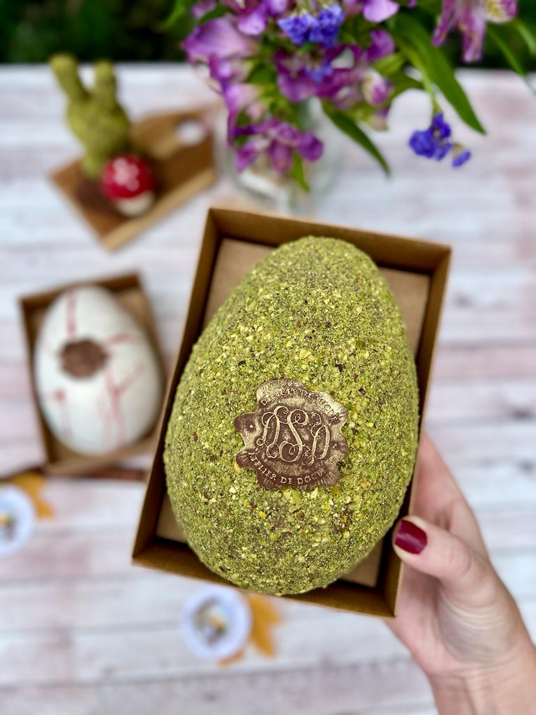 A Páscoa da Délices de Sucre (@delicesdesucre), confeitaria localizada no bairro Juvevê, traz o Pistache e o Marzipan como protagonistas em ovos recheados que vão arrancar suspiros à primeira mordida.