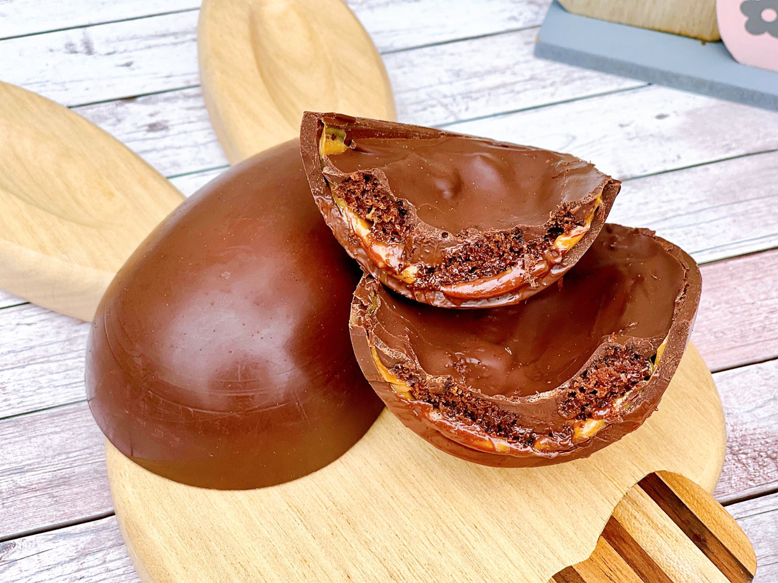 O ovo é a versão gigante do pão de mel da doceria. A casca é feita com chocolate meio amargo e é inteirinha recheada com doce de leite Moça cremoso e bolo de mel com especiarias. O perfume que fica no ar é um irresistível convite para devorar o ovo inteiro.