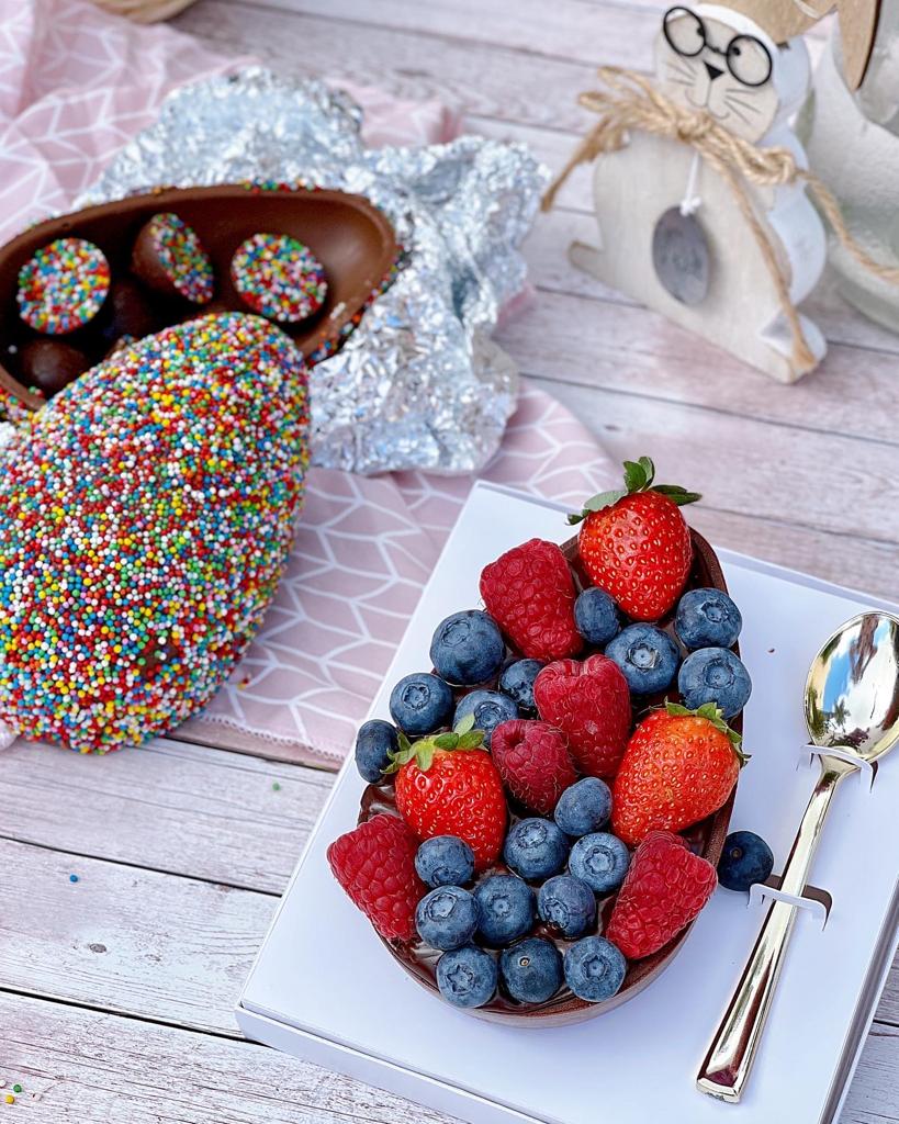 Ovo de colher trufado com frutas vermelhas é uma perdição. Ele já apareceu por aqui na Páscoa do ano passado pela primeira vez e fez bastante sucesso. É um ovo para comer de colher e a cremosidade dele é surreal.