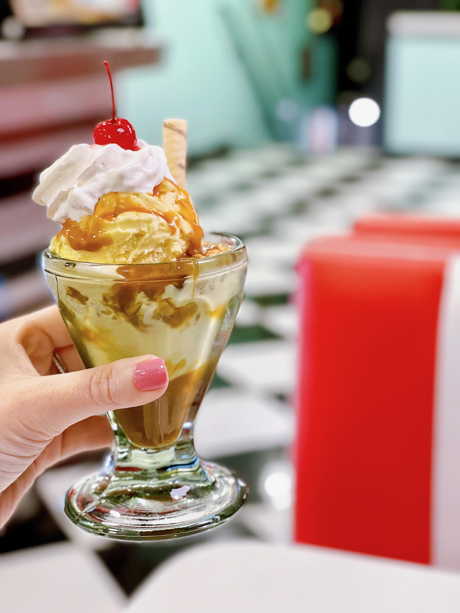 No cardápio da Pat’s Diner, apenas doces. Receitas clássicas de cheesecake, brownie e Apple Pie (R$ 30) são alguns dos destaques. O sorvete, de produção própria, eleva os sabores de sobremesas como Milk-shakes (R$ 26), Sundaes (R$ 18) e Banana Split (R$28). Um dos sabores de maior destaque é o sorvete de doce de leite.