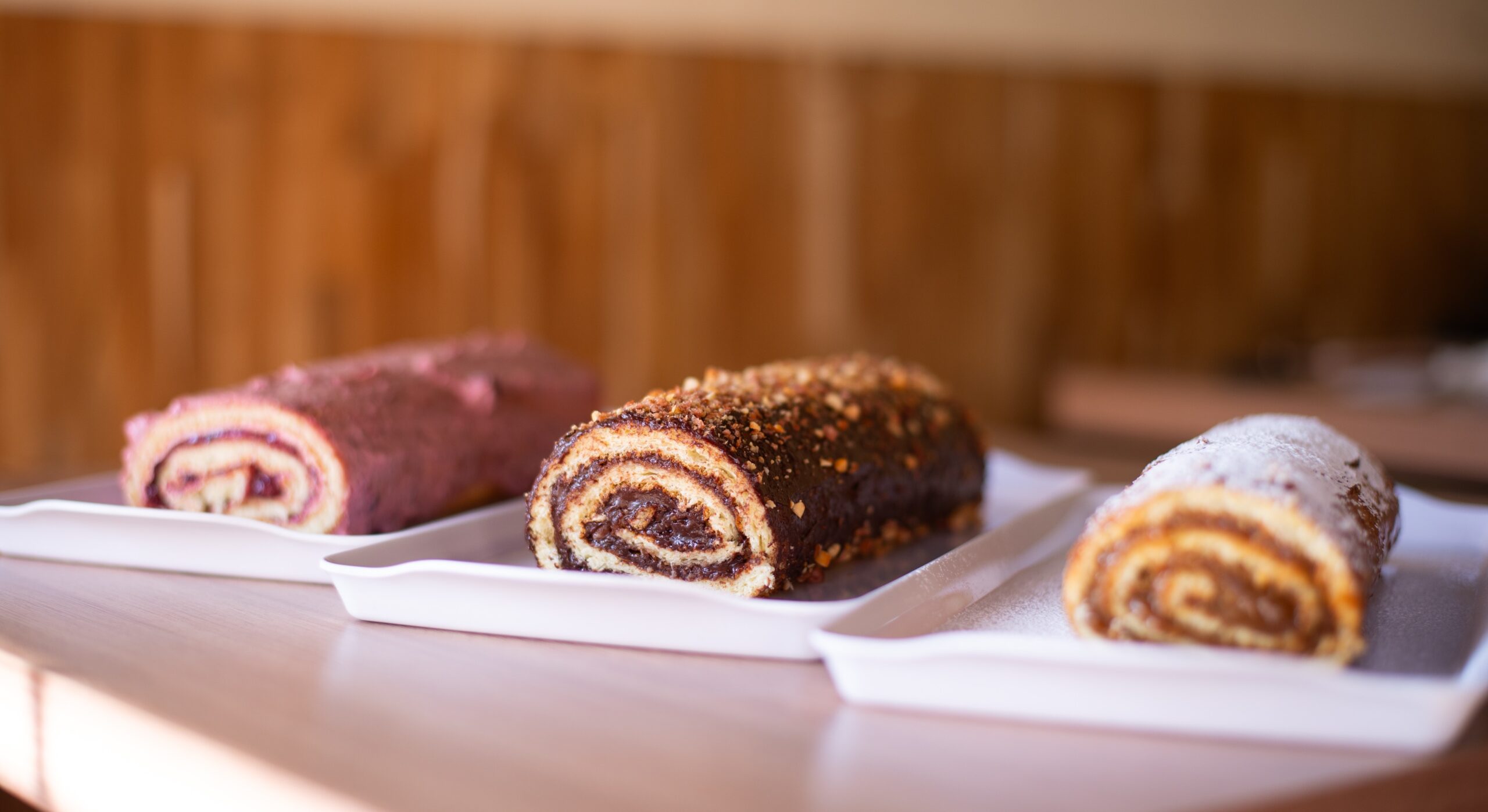 - Frutas Rojas: Massa pionono de baunilha recheada e coberta com creme chantilly e geleia caseira de frutas vermelhas.