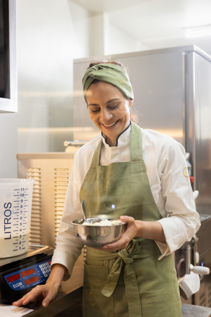 À frente da criação das receitas está a chef gelatiere Harlen Tessari Brandão, que possui formação em institutos na Itália e foi discípula de mestres renomados do gelato artesanal. Sua bagagem técnica é visível na elaboração de sabores ousados e elegantes, que transitam entre o clássico e o contemporâneo, sempre com ingredientes de qualidade e atenção aos detalhes.
