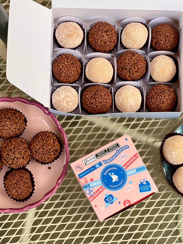 - Damarate Confeitaria – Os brigadeiros tradicionais de chocolate e de Leite Ninho brilham nas vitrines das lojas. E ainda tem combos, em que quanto maior a quantidade, mas barato fica. Uma escolha sem erros!