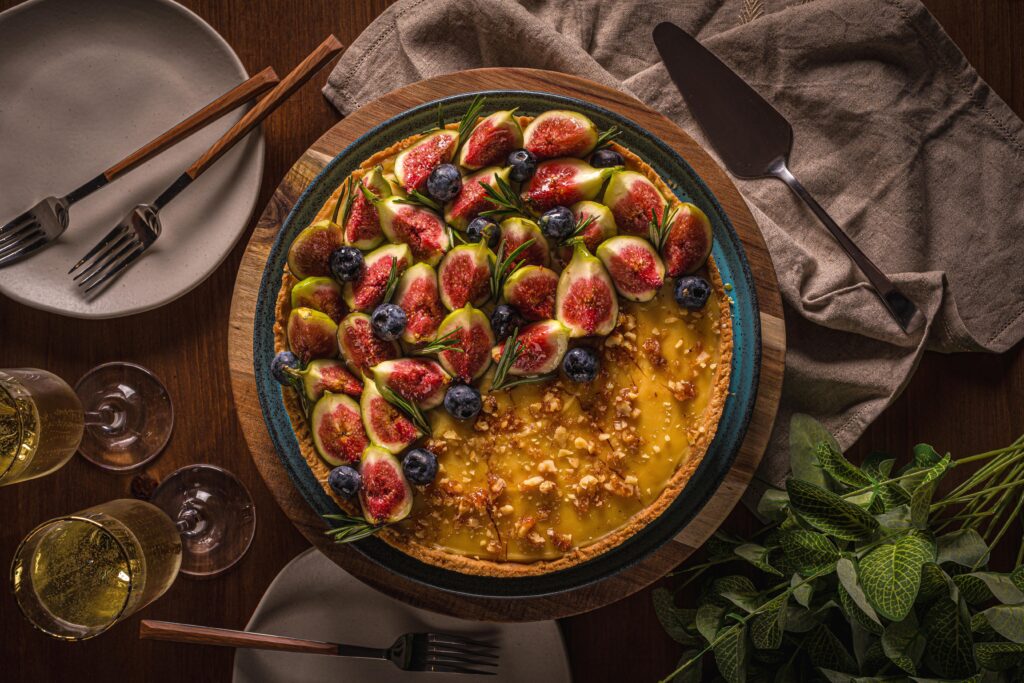 Na sequência, os bolos assumem o papel de verdadeiros protagonistas do encerramento. O Julemanden Chokolade Cake (R$380), chocolatudo e decorado como tronco de pinheiro, retorna como memória afetiva da festa. A Figentærte (R$280 grande / R$182 média), com biscuit de especiarias, mousse de mel e figos frescos, reforça o repertório que atravessa gerações na mesa de fim de ano. O Asgard Cake (R$280 grande / R$182 média), com caramelo salgado e macadâmias caramelizadas, surge como uma das opções mais celebradas. O Celebrare (R$280 grande / R$182 média), com creme de champagne e hidromel, completa a seleção com elegância e frescor.