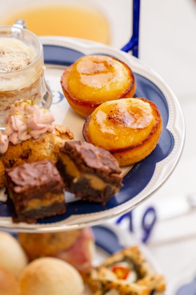 Um dos destaques é o menu degustação servido na torre, estética que já virou marca registrada da Maison Lalisse. A composição reúne três tipos de salgados e três doces em versão mini, com duas unidades de cada, suficientes para até duas pessoas. O conjunto varia semanalmente, incentivando visitas recorrentes. As bebidas são cobradas à parte.