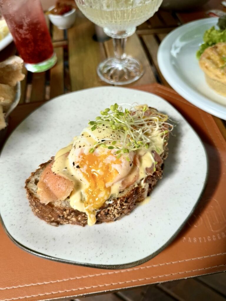 A proposta salgada segue a mesma filosofia. Aqui, sabor vem acompanhado de equilíbrio, textura e cuidado na escolha dos ingredientes. Entre os destaques estão a Tostada de Salmão Defumado, preparada com pão italiano tostado na manteiga, cream cheese cremoso, carpaccio de salmão, alcaparras e cebola roxa, e o Croissant Caprese, que combina crocância, pesto da casa, tomate, mozzarella de búfala e manjericão fresco.